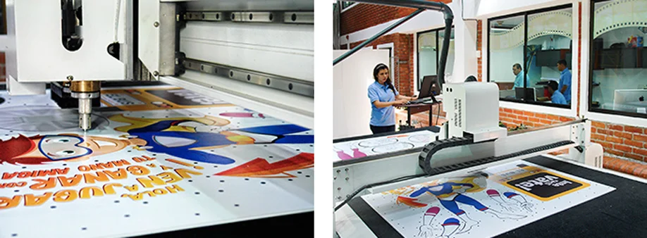 Estos equipos complementan los trabajos de terminado de piezas que van en productos como lonas para decoración de supermercados, vinilos para recoraciǿn de vehículos, displays y exhibidores entre otros.