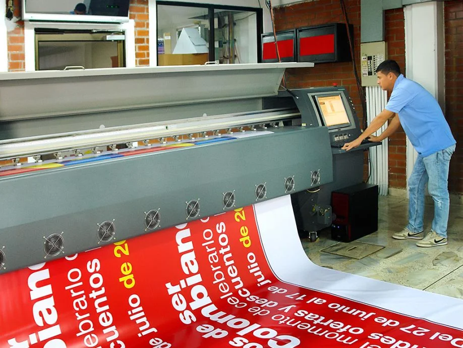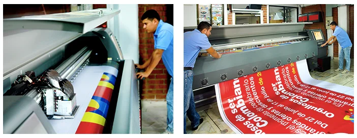 Impresión digital en gran formato con tintas solventes, son las más adecuadas para los trabajos de vallas publicitarias, lonas, vinilos, decoración de vehículos. Ofrece mayor gama cromática y saturación, gracias a los 6 seis colores Cyan, Magenta, Amarillo, Negro, Cyan Light y Magenta Light.
